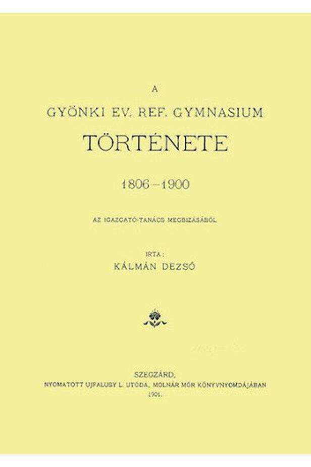 Az 1812-ben alapított gyönki református gimnázium történetét dolgozza fel a jelen munka. írta Kálmán Dezső. Szekszárd : [S.n.], 1901.